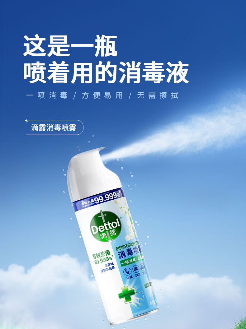 滴露(Dettol)消毒喷雾454ml鞋子除臭杀菌喷雾除臭喷雾鞋子马桶消毒除霉味铃兰