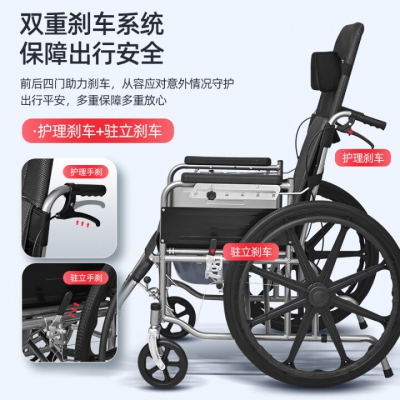 初邦手动轮椅折叠老人轻便旅行手推车档位调...